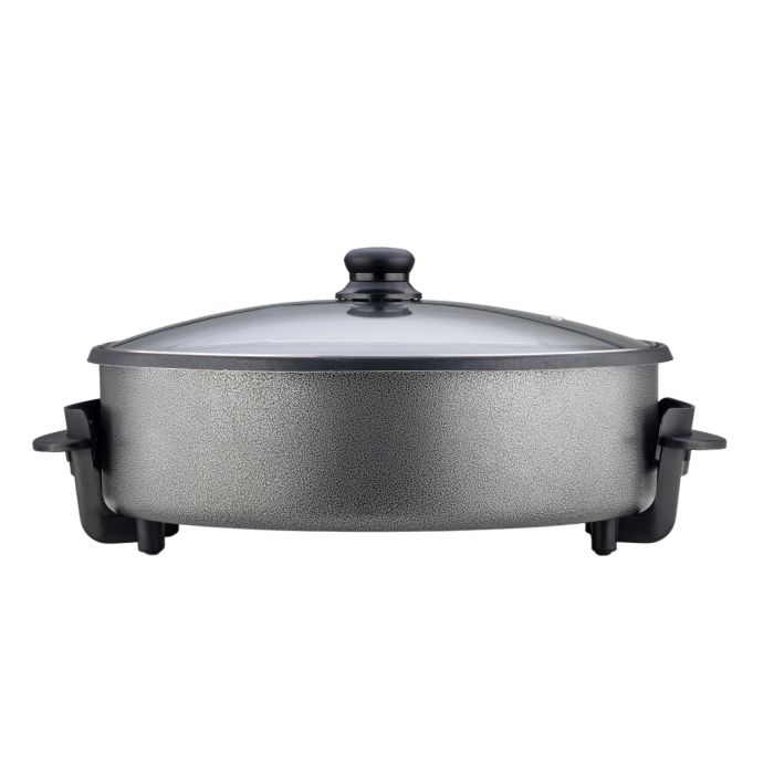 De Ferveo Leyya elektrische pan Ø42 x 9 cm in zwart combineert een ruime kookdiameter met een stevige metalen behuizing, glazen deksel en geïntegreerde thermostaat voor nauwkeurige temperatuurregeling. Deze multifunctionele elektrische hapjes- en pizzapan is ideaal voor retailers die consumenten een praktische alles-in-één kookoplossing willen bieden voor bakken, braden, stoven of het warmhouden van gerechten. Dankzij de anti-aanbaklaag en gelijkmatige warmteverdeling biedt de pan gebruiksgemak, eenvoudige reiniging en consistente kookresultaten. Bestel direct of maak een account aan om dit veelzijdige keukenapparaat aan uw retailassortiment toe te voegen.